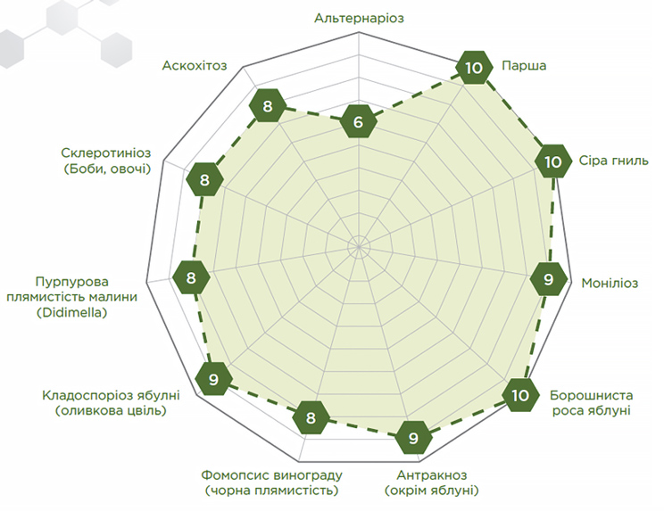 Важливо й те, що препарат можна застосовувати вже за температур від +5 °C, що робить його надійним інструментом для ранніх оброблень. Завдяки системній дії його часто використовують і для завершення сезону — у період, коли закладається фітосанітарний фон на наступний рік.