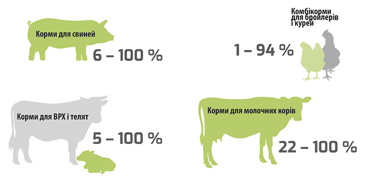 Результати багатьох досліджень свідчать про ураженість мікотоксинами основних кормових компонентів, а рівень забрудненості може коливатись від 2 до 100% у кукурудзі та силосі, від 7 до 100% — у пшениці та пшеничних висівках і від 24 до 100% — у соєвому шроті.