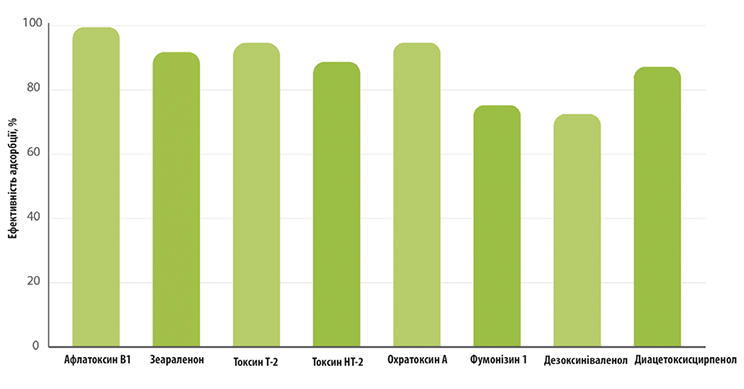 Адсорбенти — важливий інструмент керування мікотоксинами. Деякі з них ефективні проти певних мікотоксинів, тоді як інші мають ширші можливості, зв’язуючи кілька мікотоксинів одночасно. Основна мета діючої речовини адсорбенту — взаємодіяти з мікотоксинами в травному тракті тварини й утворювати стійкі сполуки на тлі змінних значень pH. Саме така модель дії запобігає всмоктуванню мікотоксинів у кровоносну систему тварини й сприяє безпечному їх виведенню з організму з продуктами життєдіяльності.