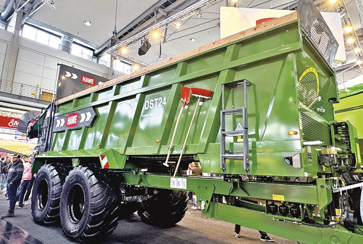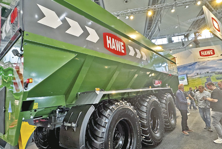 Особливе враження справляють перевантажувачі зерна HAWE: уявіть собі що 50-кубовий бункер спорожнюється всього за 2 хв — це близько 1200 т/год, або 2 т/с. Тому один такий причеп-перевантажувач може обслуговувати до трьох високопродуктивних комбайнів одночасно — комбайни працюють без простоїв, а збирання врожаю пришвидшується мінімум на 30%. І тут річ не в самому бункері чи тракторі — в усіх виробників шасі й об’єми бункерів будуть однаковими — вся справа в геометрії виробництва самого шнека, куту нахилу витків, які скопіювати, а потім і виготовити дуже складно. Саме HAWE першим розробив у Європі причеп-перевантажувач зерна й на сьогодні є лідером, на якого рівняються всі виробники причепів.