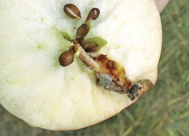 Паршу важливо контролювати навіть після весняного зараження. На листі, інфікованому у квітні під час цвітіння, з аскоспор утворюються плями, які ми частково «припалюємо» аніліно-піримідинами, чи триазолами — міцелій майже не росте, але спори залишаються. Проростання цих спор не становить 100%, але цього цілком достатньо, щоб отримати в другій половині сезону полоди, які ми описали трохи вище, зовні майже товарні, але з плямами парші.