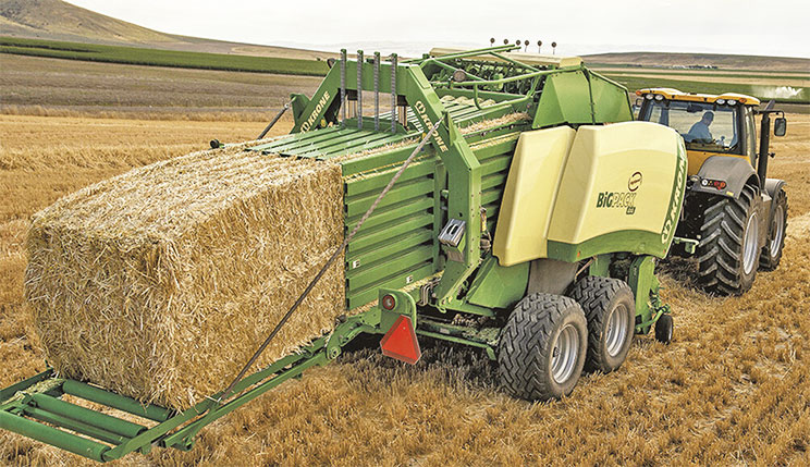Розташований у прес-каналі гідравлічний циліндр великого діаметра з автоматичним регулюванням тиску пресування забезпечує високу рівномірну щільність тюків розміром 120 х 90 см.