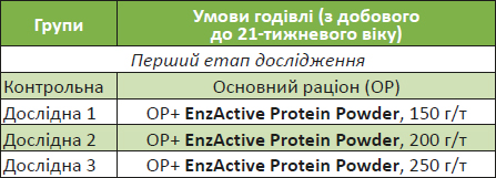 Маючи успішний досвід на свинях, ВРХ і птиці, ми зробили наступний логічний крок — протестували ефективність дріжджових біопродуктів у годівлі гусей. Було організовано випробування із введенням інноваційної кормової добавки EnzAсtive Protein Powder (таблиця).