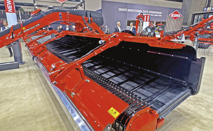 KUHN — єдина компанія у світі, що пропонує повний цикл техніки для заготівлі кормів: від косарок, валкоутворювачів і ворушилок до прес-підбирачів, видувачів, кормозмішувачів і навіть роботів-кормозмішувачів. А в багатьох напрямах є справжнім піонером. Ще 58 років тому підприємство створило першу дискову косарку GMD. Постійно оновлюючи галузь, KUHN розробив перший у світі стрічковий валкоутворювач MERGE MAXX і на виставці в Ганновері продемонстрував друге покоління цього агрегата — MERGE MAXX 952. Головне, чим відрізняється машина, — можливість працювати як через ISOBUS, так і через класичний блок керування. Це дало змогу залучити функцію посекційного вимкнення.