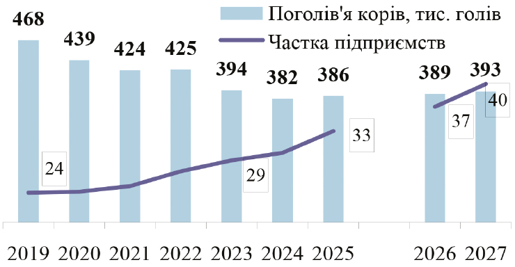 Відповідно, якщо частка підприємств у загальних обсягах виробництва молока в Україні до середини 2010-х рр. не перевищувала 25%, то торік вона перевищила 41%, а цього року, за прогнозами, сягне 46%, а наступного — зросте до 50%.