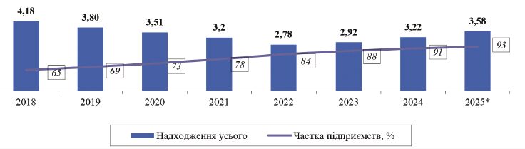 Обсяги надходження сирого молока на промислову переробку з 2023 року динамічно збільшуються — середньорічний темп збільшення останніми роками перевищує 10%. Очікується, що 2025 року на промислову переробку надійде понад 3,5 млн тонн молокосировини, що перевищить показник 2020 року (рис. 6).