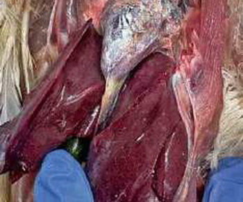 Крім того, вірус може уражувати й інші органи, зокрема кишківник, печінку, селезінку, підшлункову залозу, бурсу Фабриціуса та тимус, спричиняючи загальне ослаблення організму. Такі зміни супроводжуються діареєю, пригніченням росту й зниженням продуктивності птиці.